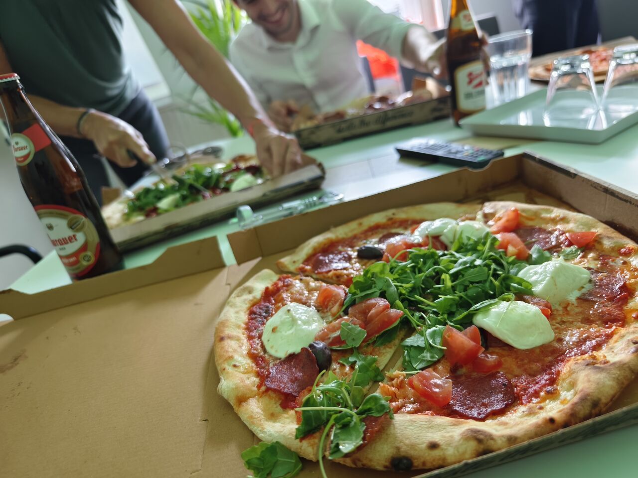 Als Dankeschön für den Einsatz des Teams, haben unsere österreichischen KollegInnen schließlich bei Pizza & Bier auf die erfolgreichen Umbaumaßnahmen angestoßen konnten bei dieser Gelegenheit gleich den vergrößerten Gemeinschaftsraum einweihen.